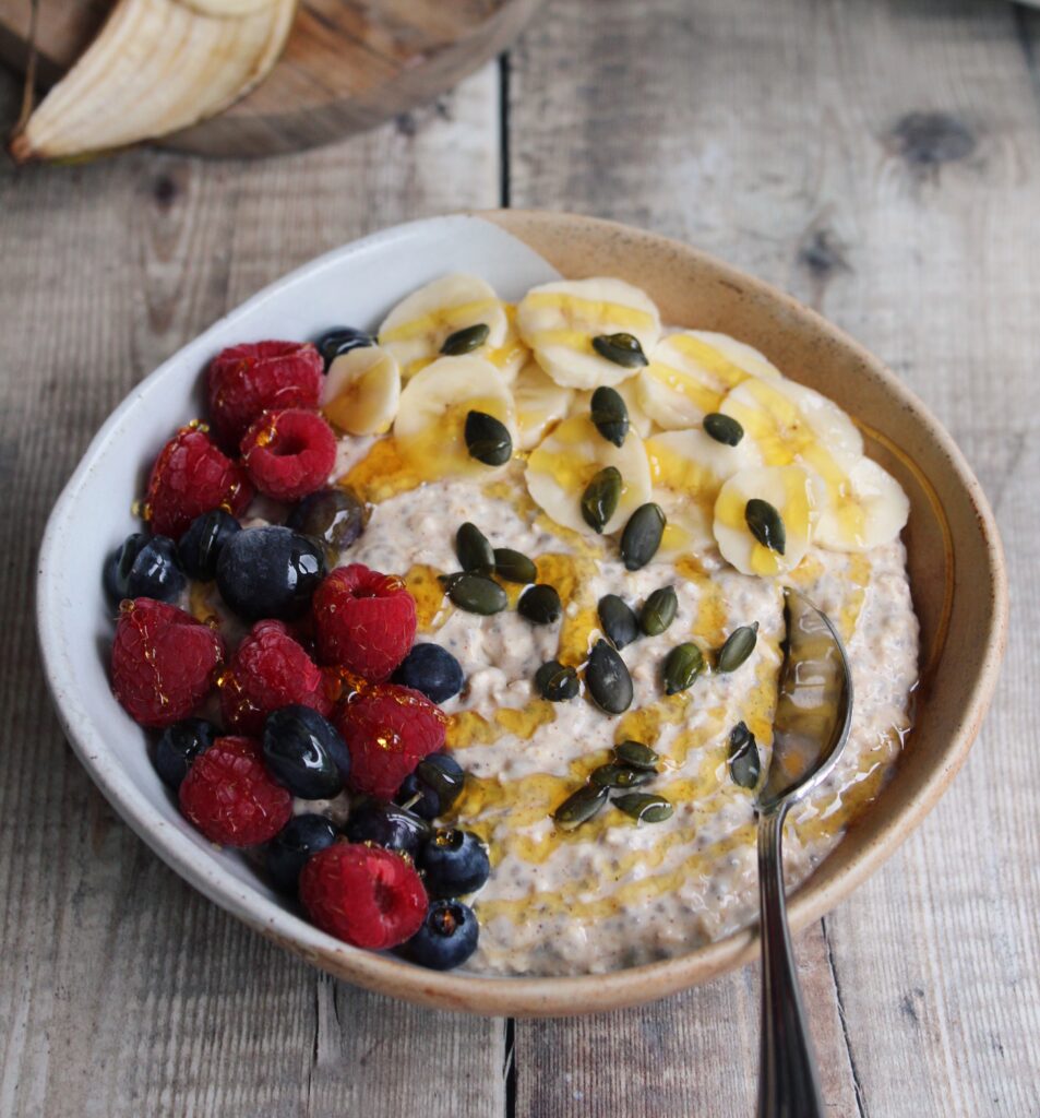 I’ve never been a fan of the taste of protein powders but am keen to up my intake of plant based protein, so I came up with this recipe which ticks all the boxes for a nutritious, high protein breakfast with no protein powder in sight! Of course, if you’d prefer to add protein powder I have included that as an option.