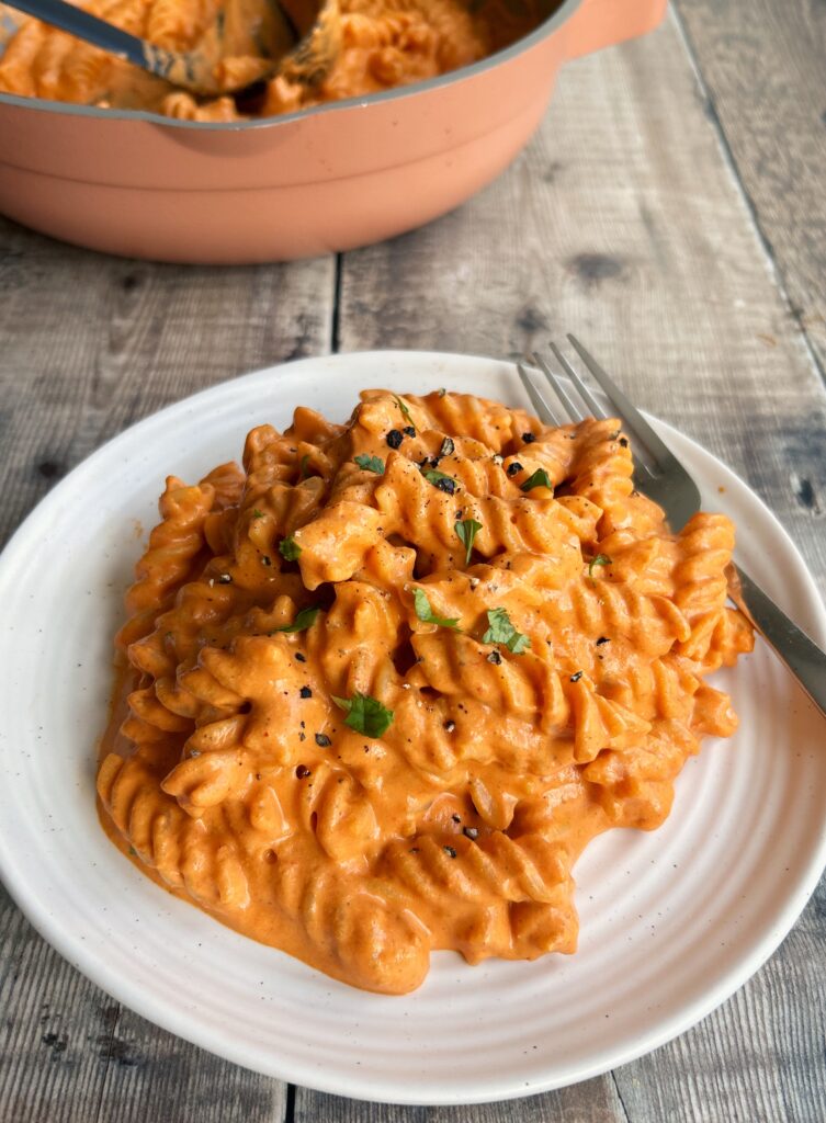 There’s nothing more comforting than a big bowl of creamy pasta – it has to be one of my favourite meals. I really wanted to create a version that was higher in protein, and perfect for meal prepping for lunches for the week. This High Protein Roasted Red Pepper Pasta is high in protein, super creamy, and really filling.