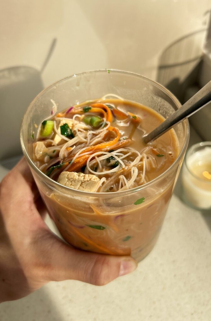 Instant Jar Noodles are life-changing, they’re quick, convenient, filling and super nutritious. Today we’re making a peanut version using a delicious soup base full of salty, sweet, and umami flavours. They’re perfect for meal prep and great for autumn when you want a cosy, comforting meat lunch time.