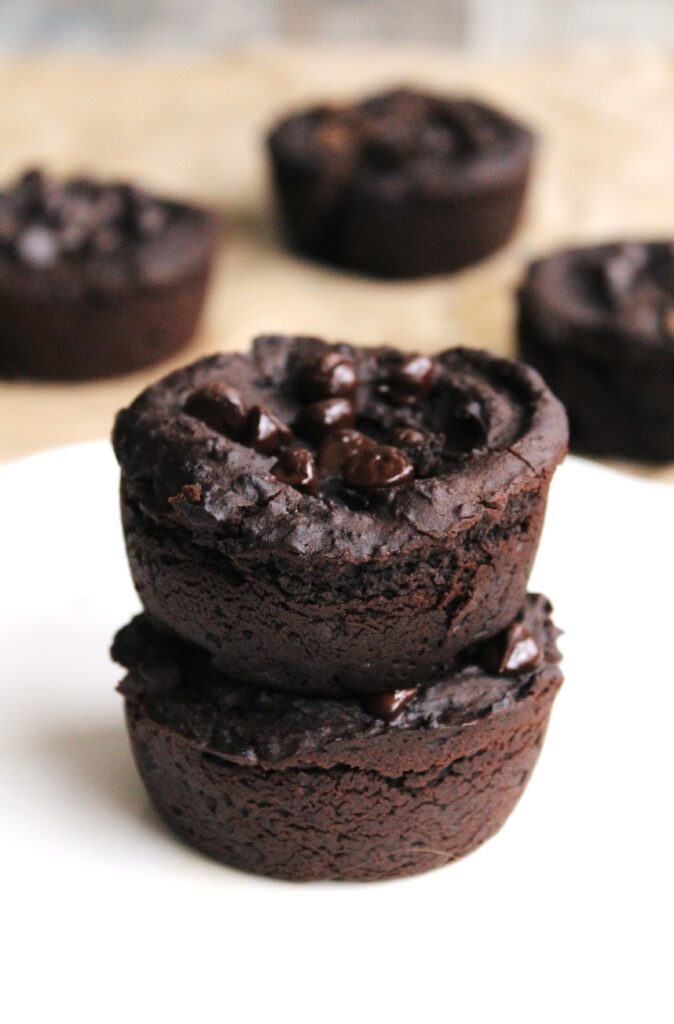 • Fill the muffin tin with the batter – it should make around 6 muffins. Top each one with a few more chocolate chips and place in the oven to bake for 20-23 minutes.