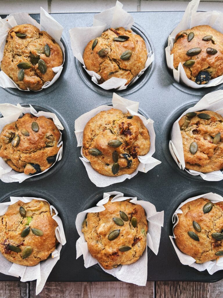 I’ve always struggled with savoury vegan snacks. I’ve always tended to resort to no bake bars, yoghurt bowls and granola bars, so I wanted to create a savoury snack option that was actually delicious. Enter: these delicious savoury muffins which taste like pizza in muffin form!