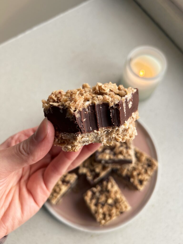 With a sweet crumble base and topping and a creamy chocolate orange centre, these Chocolate Orange Fudge Bars are the perfect festive no bake treat. I am completely addicted to these and they’re something that everybody will love. They’re great as a grab and go snack, packed into lunch boxes or enjoyed as a post dinner sweet treat. They’re completely vegan, incredibly easy to make, and the best part is, no baking is involved!