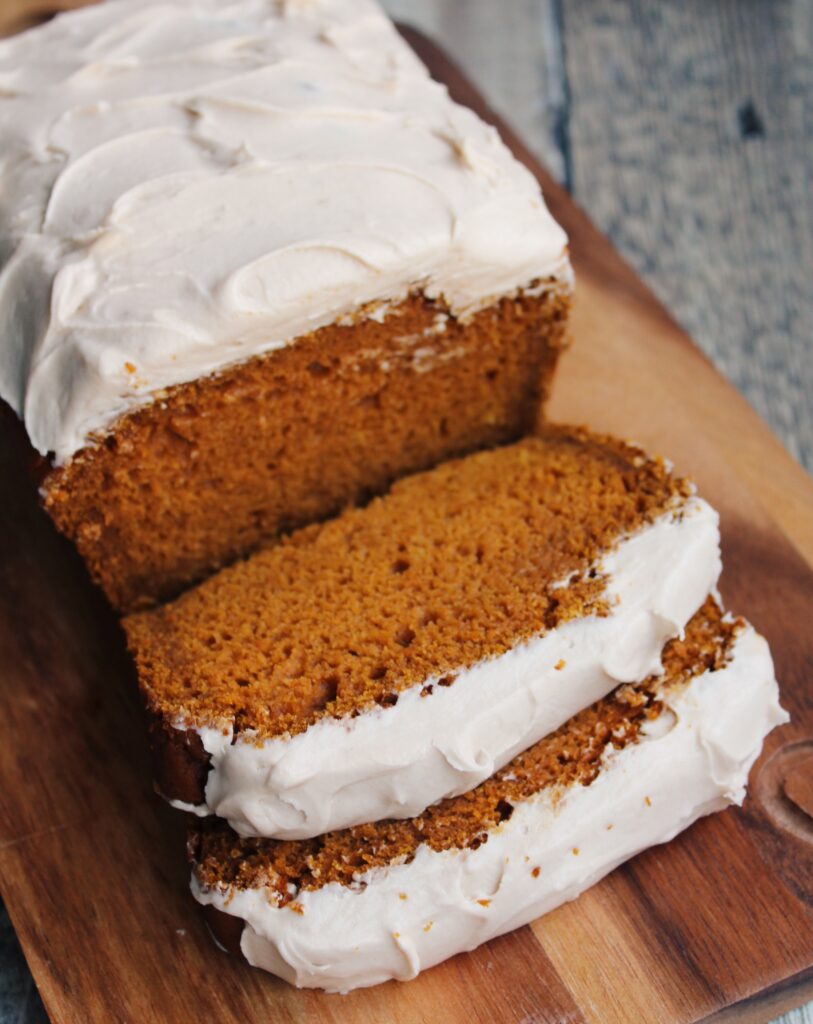 Okay, okay, one more pumpkin recipe! This is my Vegan Pumpkin Bread with a Cinnamon Buttercream topping. It’s delicious and I’m 99.9% sure you’ll love it!
